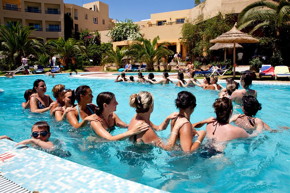 Piscines dont 1 couverte, Aérobic, Water-polo, Ping-pong, Pétanque, Beach Volley, aquagym, fléchettes et Jeux de Société, planche à voile, embarcation à pédales, kayak. Et le soir : Sketches, Cabaret Show et Soirées à thèmes (Election Miss, Election Mister, Election Couple Idéal) Les jeux, la danse, le chant et autres activités sont bien au rendez vous avec notre équipe d'animation qui vous accompagne ou que vous soyez; à la plage, à la piscine, au bowling, à la discothèque; et vous assure un climat de détente et de festivité Mini-club 4/12 ans, Bowling de 3 pistes, Discothèque «Le Strike»