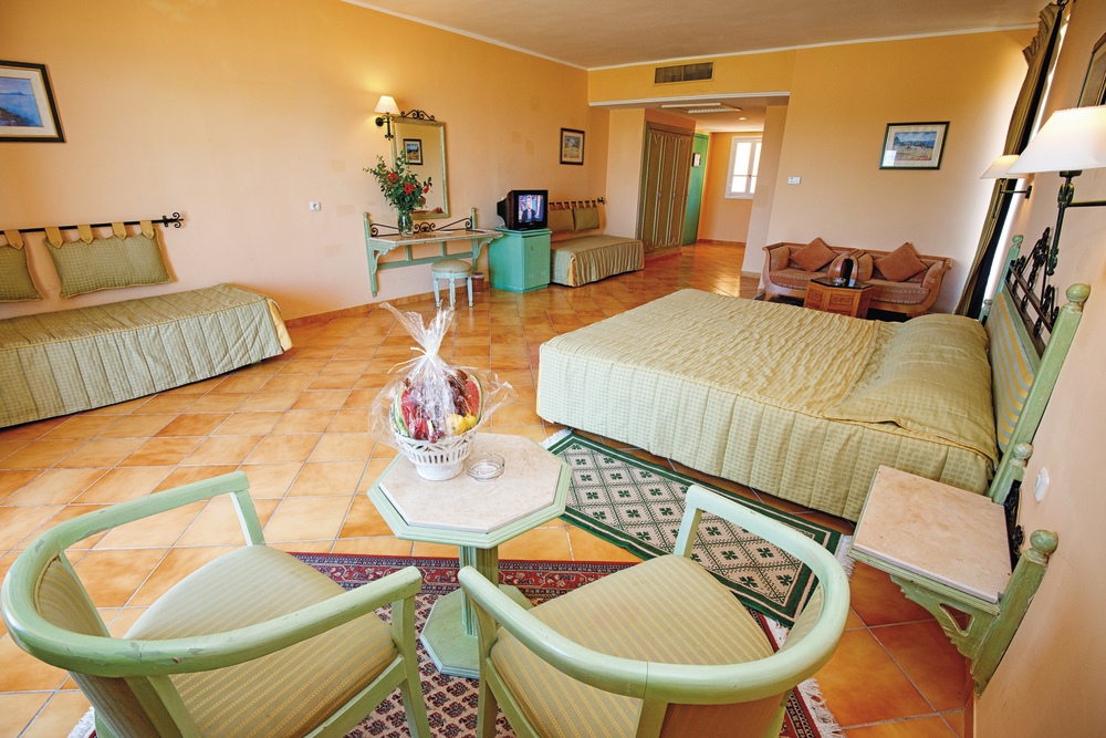 L'hôtel met à votre disposition 330 chambres (dont 22 communicantes) et suites à usage double ou triple, l'hôtel offre une vue imprenable sur la montagne et/ou la mer, piscine et Jardin. Nos chambres spacieuses vous offrent un cadre de séjour unique et une décoration exceptionnelle alliant la noblesse du bois et la finesse de l'artisanat tunisienne.Les chambres sont équipées de toutes les commodités luxueuses du 5* (air conditionné et chauffage individuel, banquette, baby Cot (sur demande), TV Satellite, mini bar, coffre fort, téléphone, sèche cheveux), L'hôtel est équipé également de chambres orientées pour les familles avec des chambres quadruples et lits superposée