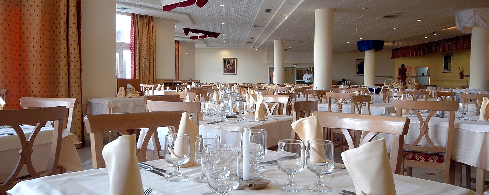L'hôtel El Mouradi Skanes Beach Monastir propose 2 restaurants et 4 bars : le Restaurant buffet « Tulipe » ,le Restaurant « Narcisse » ,le snack piscine « Marguerite » ,le lobby bar « Iris »,le bar américain « Orchidée »,les bars piscine « Anémone » et « Œillet » et le bar plage « Lys ».Un café maure « Jacinthe »et un nightclub