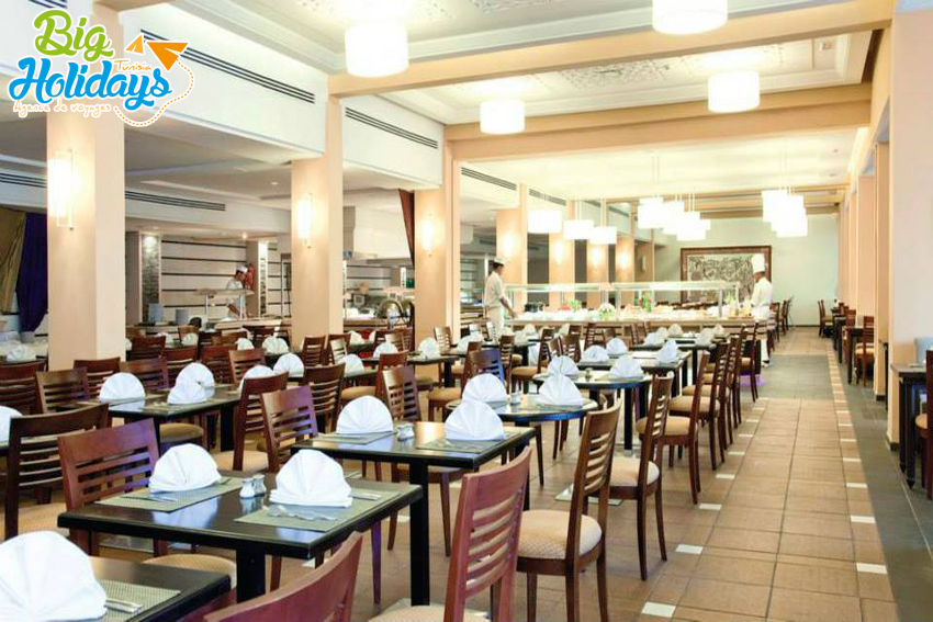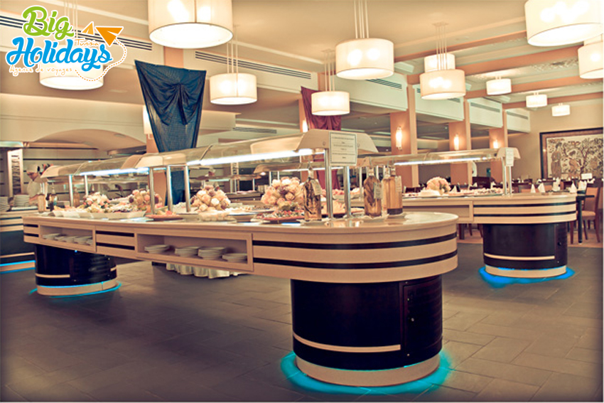 L'hôtel Marhaba Salem Sousse vous propose : • Le petit déjeuner en buffet • Le déjeuner en buffet avec un service à table pour le dessert • Le dîner avec les entrées en buffet et un choix de plat principal et de dessert qui vous seront servis à table. Pour mieux servir les clients et varier les choix. L'Hôtel Marhaba Salem met également à votre disposition : • Un restaurant à la carte qui vous promet dépaysement, découverte et la possibilité de mieux apprécier la cuisine internationale . • Un restaurant au bord de la mer où des grillades au feu de bois et des pizzas variées vous seront servies au ras des vagues. Côté bars: L'hôtel Marhaba Salem vous en propose: • Un Bar au bord de la mer. • Un Bar sur la terrasse de côté de la piscine. • Un bar salon de côté de la réception. • Un café Maure avec son style arabe traditionnel. Vous pourrez savourer des moments privilégiés de détente et de plaisir.