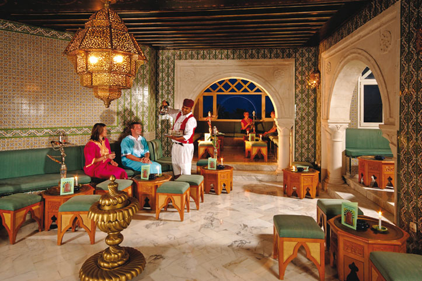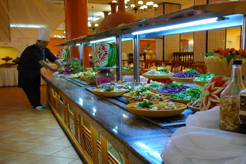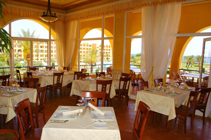 L'hôtel Nour Palace Mahdia dispose Formule: logement petit déjeuner, demi pension et pension complète. Restaurant central avec des buffets thématiques : Capacité pour 700 pax. • Restaurant à la carte, • Un restaurant à la carte - Coffee Shop . • Un Snack bar au Bowling. • Lobby bar, • Piano Bar, • Bar plage, • Bar Piscine, • Cabaret / Disco Bar, • Café maure.