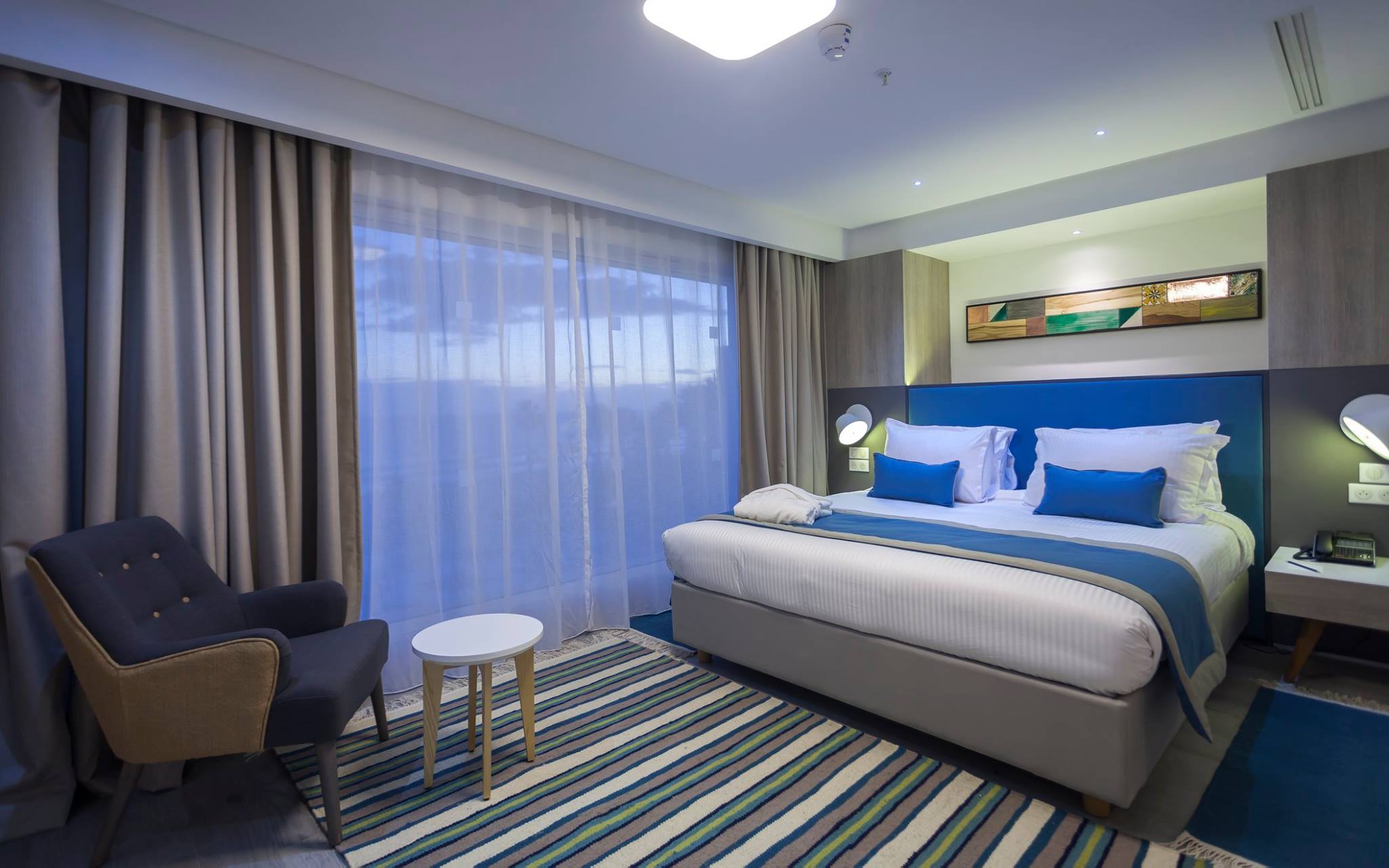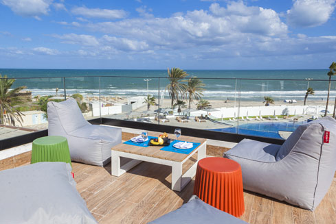 « Executive Lounge » avec une vue surplombante sur le large de la ville de Sousse et sa plage.